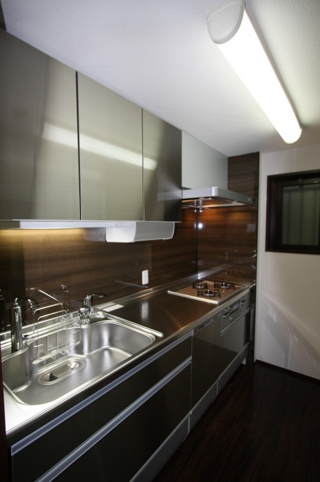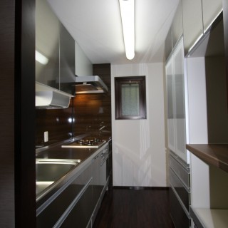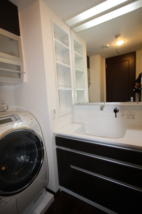 水廻りを主体に設備交換。意匠も替えとことんこだわりました。既存の建具の色と床フローリングを残すことでシックで大人の雰囲気な空間になりました。細かいところへの気配りとして、建具金物を交換したりなど。ご満足いただける仕上がりになったとお喜び頂きました。