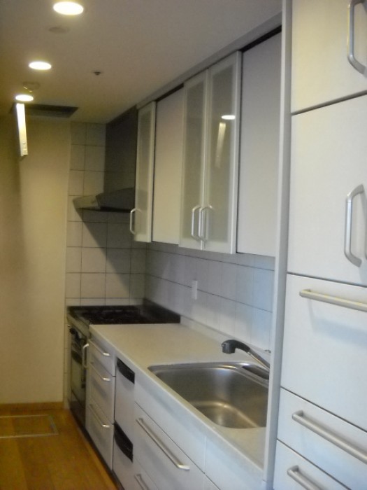 港区にある超高層マンション29階の1室、築10年も満たないこのマンションの既存の仕上げは、古さを感じないまでも、グレードとしては中級といった感じ(量産的な感じもします。)です。今回、中古物件を購入し、大規模なリノベーションをして住まいたいというオーナー様のご意向により、デザインナーさんとキッチン専門業者さんとチームを組み進めることになりました。