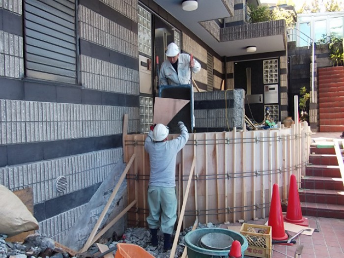 港区にある高級マンションの1階玄関部の階段のリフォームです。