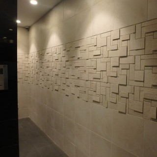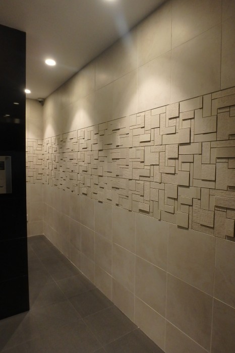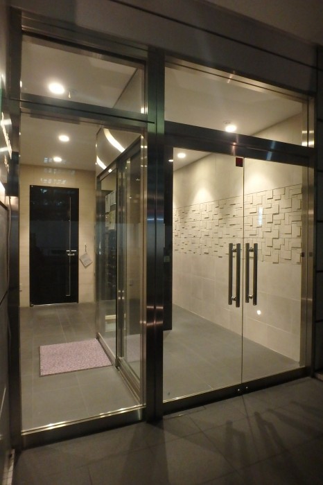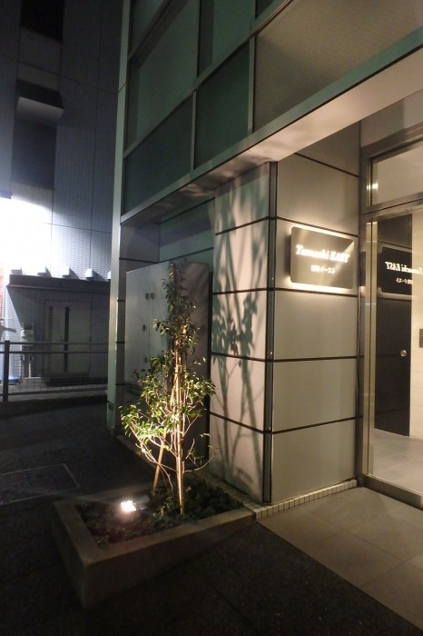 東京のシーフロントにあるオフィス+レジデンスの建物。オフィスをメインに建てられているのもあり、シンプルなカーテンウォールでの外壁、金属パネルの表面。上階レジデンス部のエントランスを住居らしくというオーナー様のご要望でプランを考える。住居の優しさか温かさか、、それを最小限の範囲で効果をあがていくこと。それができるかである。木を使用することに躊躇いもでてくる。全体像で考えると何かしっくりしないものがある。そうではない。温かさ、差別化、安らぎでもあり、ほっとするエントランスとは、特別なお出迎えでもある。特別であればよい。植栽の差別化、ライトアップ、、入口壁の優しさ、ぬくもり、天井を改修し繊細にしあげる。サインはカッコヨク。