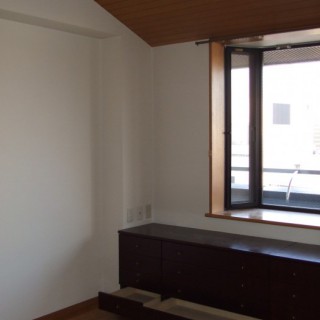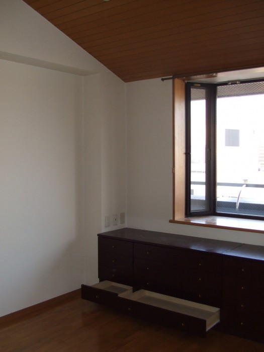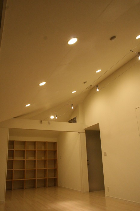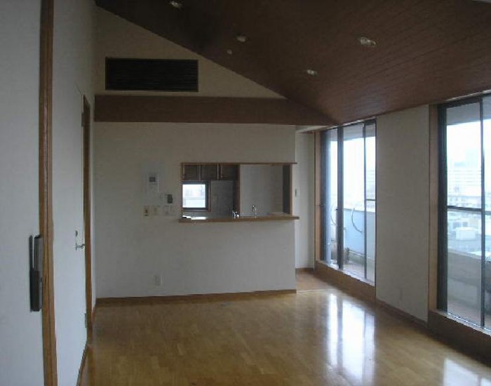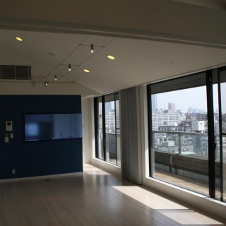 【設計・監理者から】既存の仕上げをいかに費用を抑え、新しい仕上げに変えていくか、下地処理の大切さがあります。ピーリングの天井材は、目地を全面パテ処理にて対応。下地材を張ってつくることもしていきます。既存を生かしながら発生材を出さないように抑えていくのもエコになります。気持ちのよい環境での仕事でした。見晴らしが最高のペントハウス。