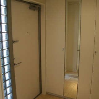 ガラス張りのスタイリッシュな概観からは分りませんが、実は築20年あまりです。ひとたび室内に入ると、今では時代おくれ感が否めない建築当事の流行を思わせる内装と、フローリングや建具の年月による劣化が気になります。 「住居としてもオフィスとしても賃貸可能な物件に」というオーナーさんのご希望を踏まえ、また、代官山というおしゃれな立地を考えて、ワークセブンでは「住宅としてもSOHOオフィスとしても使用可能なデザイン性が高く洗練された空間でありながらも、極力無駄のないシンプルなデザインのお部屋」をテーマにリフォームすることにしました。