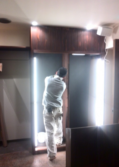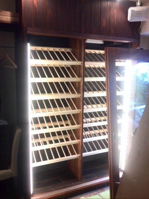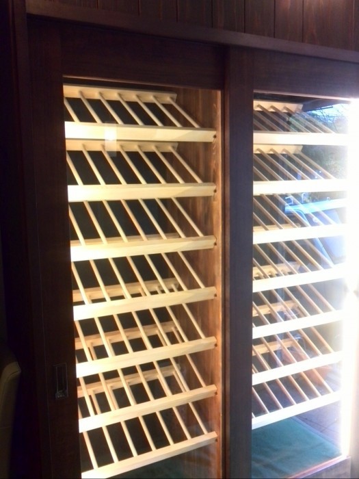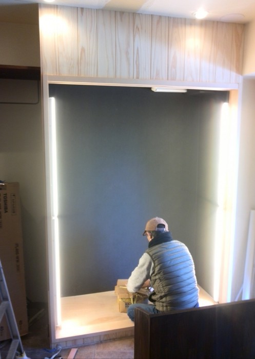 世田谷区下北沢でお店を経営していたオーナーが店舗の契約終了を機に新しいシェフも迎えパワーアップして店舗を出店したいので内装を一部お願いしたいと依頼を受けました。もともと同じ業態でのお店だったので一部の設備・内装を利用しながらの改装工事を先月行いました。メインは手作りのワインセラー。とにかくかっこよく、収納もたくさんできての希望でした。素材と限られたスペースでの空間設計です。角度をラベルがきちんと見えてそれで沢山収納できるという希望でした。通常の既製品で調べてもせいぜい角度は15°でしたね。そこにどの程度角度をつけるか、、、。使い勝手もよくないといけない。現場での作る人の力がはっきりでました。テーブル板も一枚板でのこだわり、、、。完成は、オーナーに大変喜んで頂きました。今後のお店のさらなる繁栄を願っています!