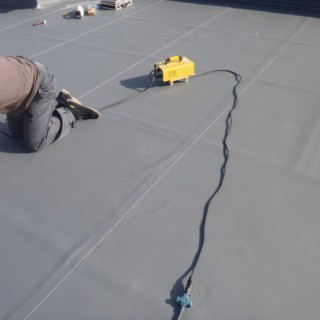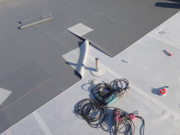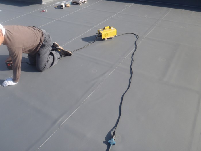仕上げ防水シート貼り作業