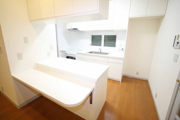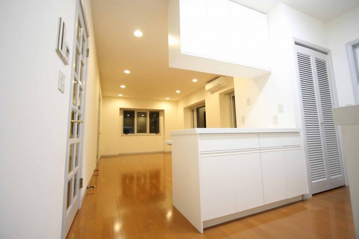 【設計・現場施工管理担当者より】思い入れがあるこの仕事。人のつながりをもってご紹介頂いたお仕事です。オーナー様の大切なものを感じ、こちらも精一杯仕事をさせて頂きました。玄関ドアは木製のもの、陳腐化し交換をすることに、床はどうしてもフローリング。キッチンの大きさから交換は費用的に現実的でなく、部分改修をご提案させて頂きました。