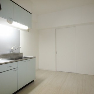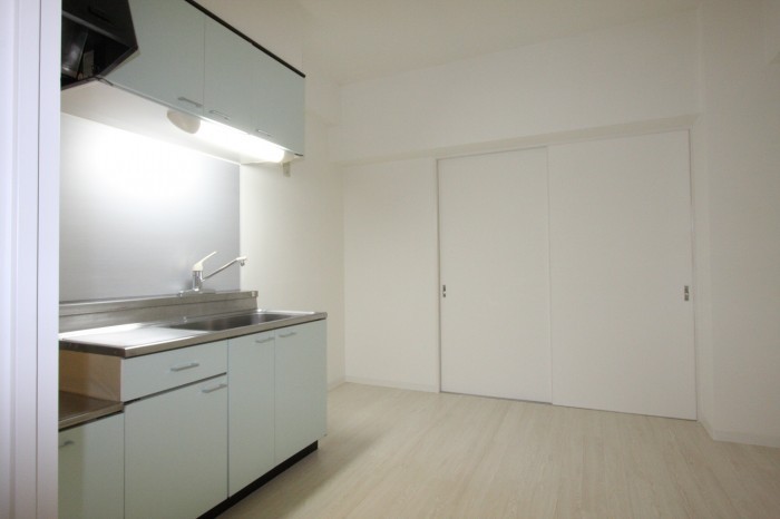 こちらも優しくミントの色をキッチン扉に内装は白く明るく。