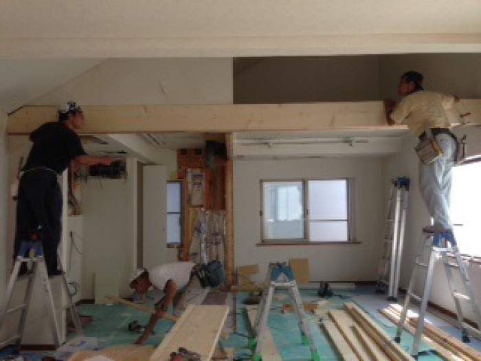 【設計担当者より】構造体をいじる間取り変更プランは慎重に検討が必要。荷重の計算をし、支えをどうするか?図面では図れないものを現地解体をし検証をしていく、「現場が大事!」といった感じでした。いろいろとオーダーでの製作で他にないものとなった住まいにご満足頂いたようでよかったです。施主様も真剣!私たちももちろん、その駆け引きが重要です。大変だった仕事をご理解いただいて「ワークセブンに頼んでよかった!」というお言葉を頂戴しました。とてもうれしい瞬間でしたね!