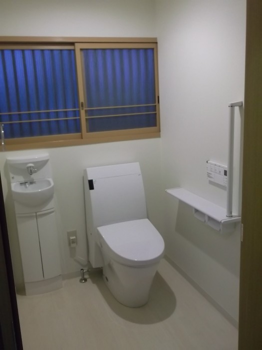 これから先を見据えてのとトイレ改修でした。ご自身で、または、付き添いの方が一緒でも無理のない設計をする。ご要望は細部にわたっていました。以前、高齢者の目線、動きを体験したことがあります。おもりを背負い、ゴーグルをかけ、肘も膝も曲がらなくなり、、視野はどれぐらい狭くなっただろう。それを体験しているのとでは日ごろの気遣いも変わってくるでしょう。