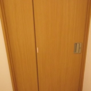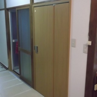 施工後)入り口建具は、軌道を確認、とても有効的なものを選定。2つ折りで狭い範囲で動くもの。