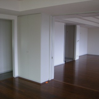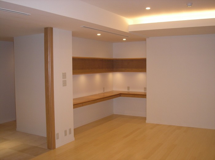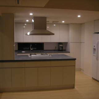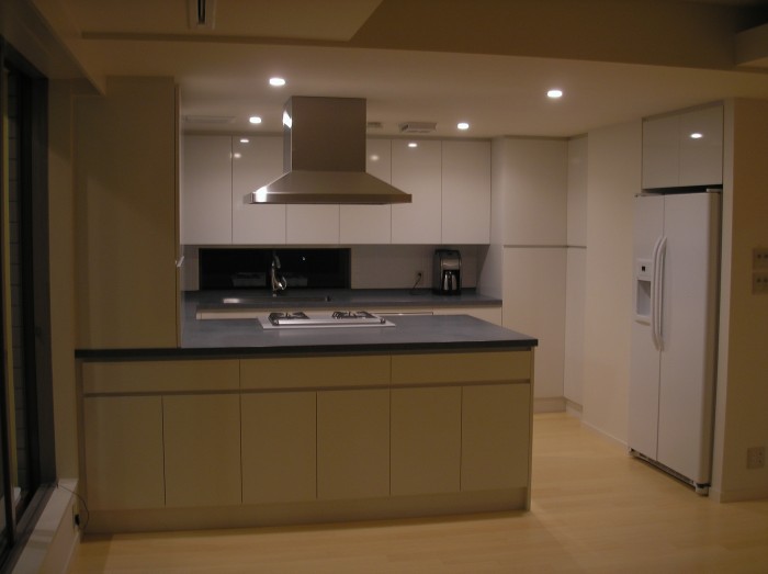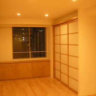 この物件で一番最初に進めたリノベーションです!間取りを大きく変更したプランで設計は当初、外部の設計事務所で有名な建築家の方に依頼をし、設計が進んでおりました。弊社は工事を請け負った事例なのですが、進めていく中で設計に変更をお願いしたいというご入居者様の間で調整ができなくなり、設計事務所がおりたかたちになりました。そこを引き継いでいきました。設計の変更、仕上げの変更は余儀なくされて綿密に打ち合わせを進め、フローリングの色さえ設計プランとは違うものが良い!という話で、最短で調達をしたのを鮮明に記憶をしています。何かと時間がない中、大変な仕事でありました。仕様はナチュラルでありながら日本びいきのアメリカ国籍の方でご家族が大勢おりました。