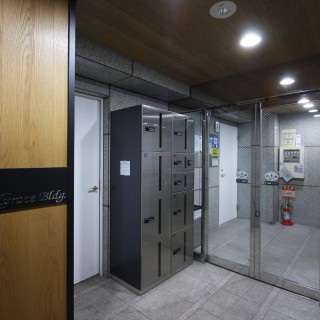 賃貸マンションのエントランスリニューアル。竣工時、高級感のある石張りで仕上がっているも経年によりリニューアルを実施。高級感ある石張りを生かし、アクセントをつけてより落ち着いた、リデザインされた空間をつくる。館銘板、ポスト、宅配ボックスの劣化、また、備品等のデザインにより、洗練された空間となる。光の演出なども重要。