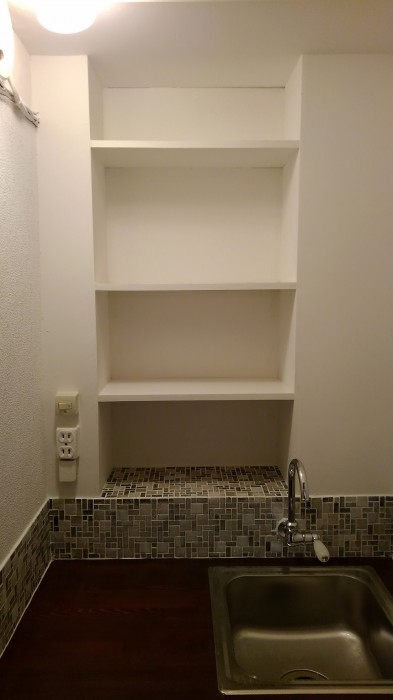 水場。露出配線。モザイクタイル。