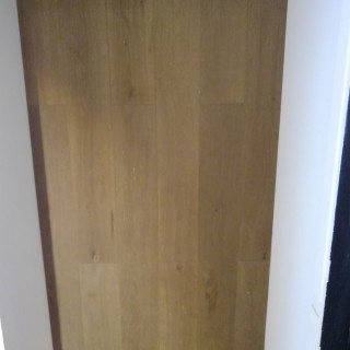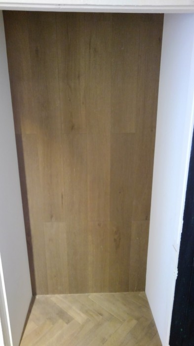 壁、天井はモルタル塗の上に塗装。床はヘリンボーンで。