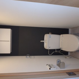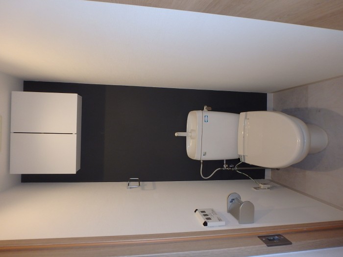 トイレ、背面の壁紙をアクセントに。