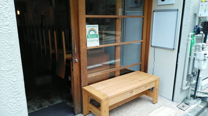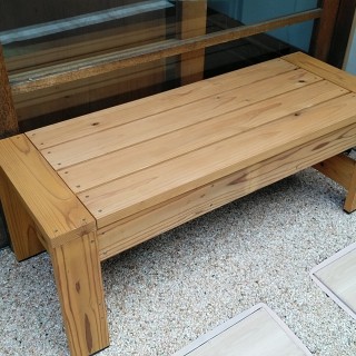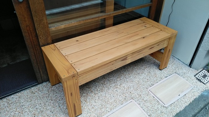木製のベンチ、和風にとのご要望で。杉材を使用。ステイン塗料を1回塗。